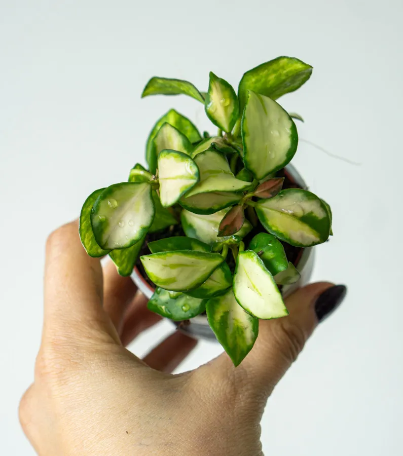 Som malá vzrastom, ale obrovská svojím šarmom. Medzi zberateľmi voskoviek patrím k skutočným favoritom, a to vďaka mojim drobným, takmer bacuľatým lístkom, ktoré zdobí krémovo-žltá variegácia na okrajoch. Moje listy sú pevné a šťavnaté, pretože si v nich, ako správny sukulent, uchovávam zásoby vody na horšie časy. 🍃